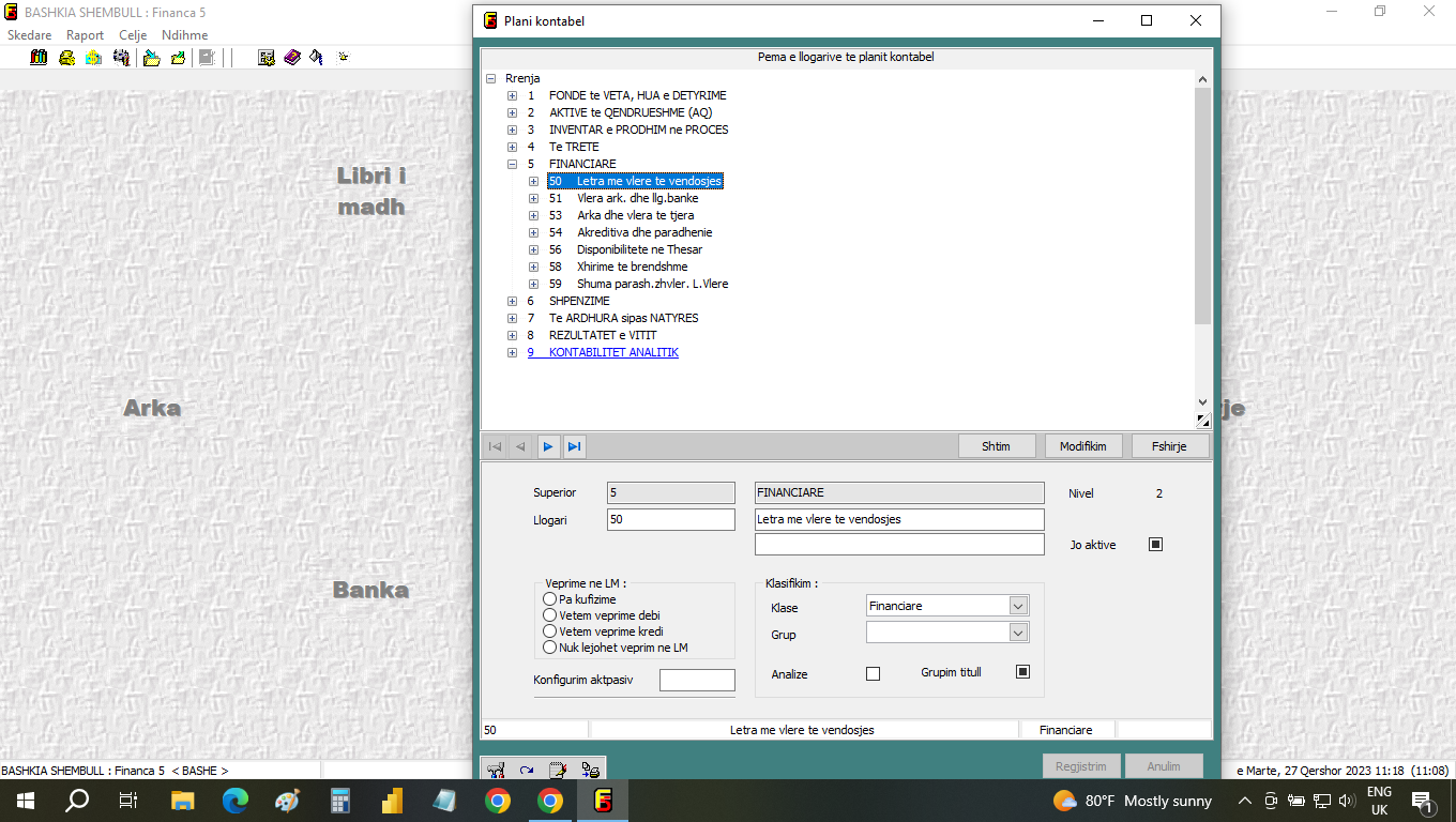 6. Rregjistrimi i bilancit fillestar ne programin Financa 5 Standard.